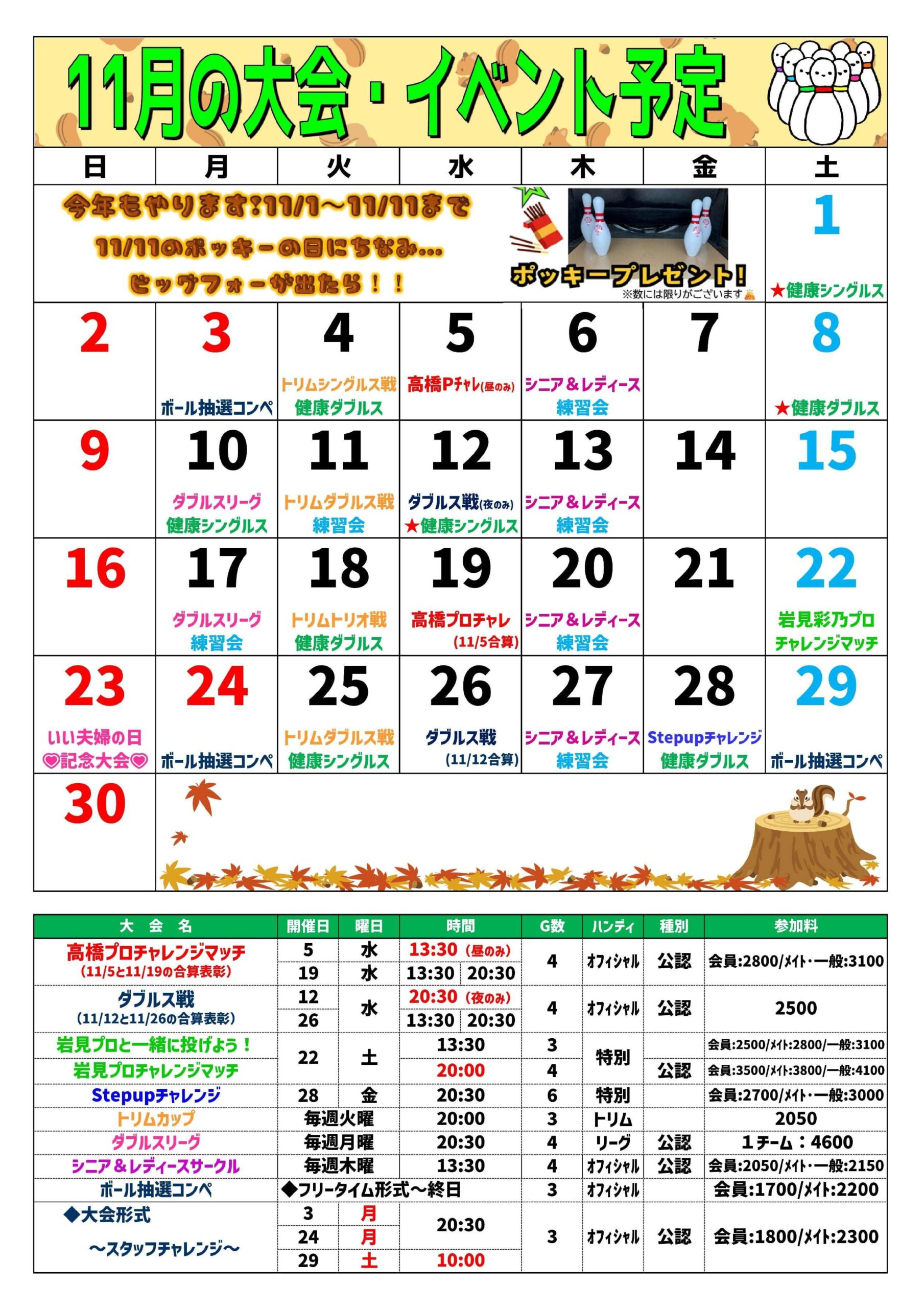 • 11月大会・イベントスケジュール【ボウリング】