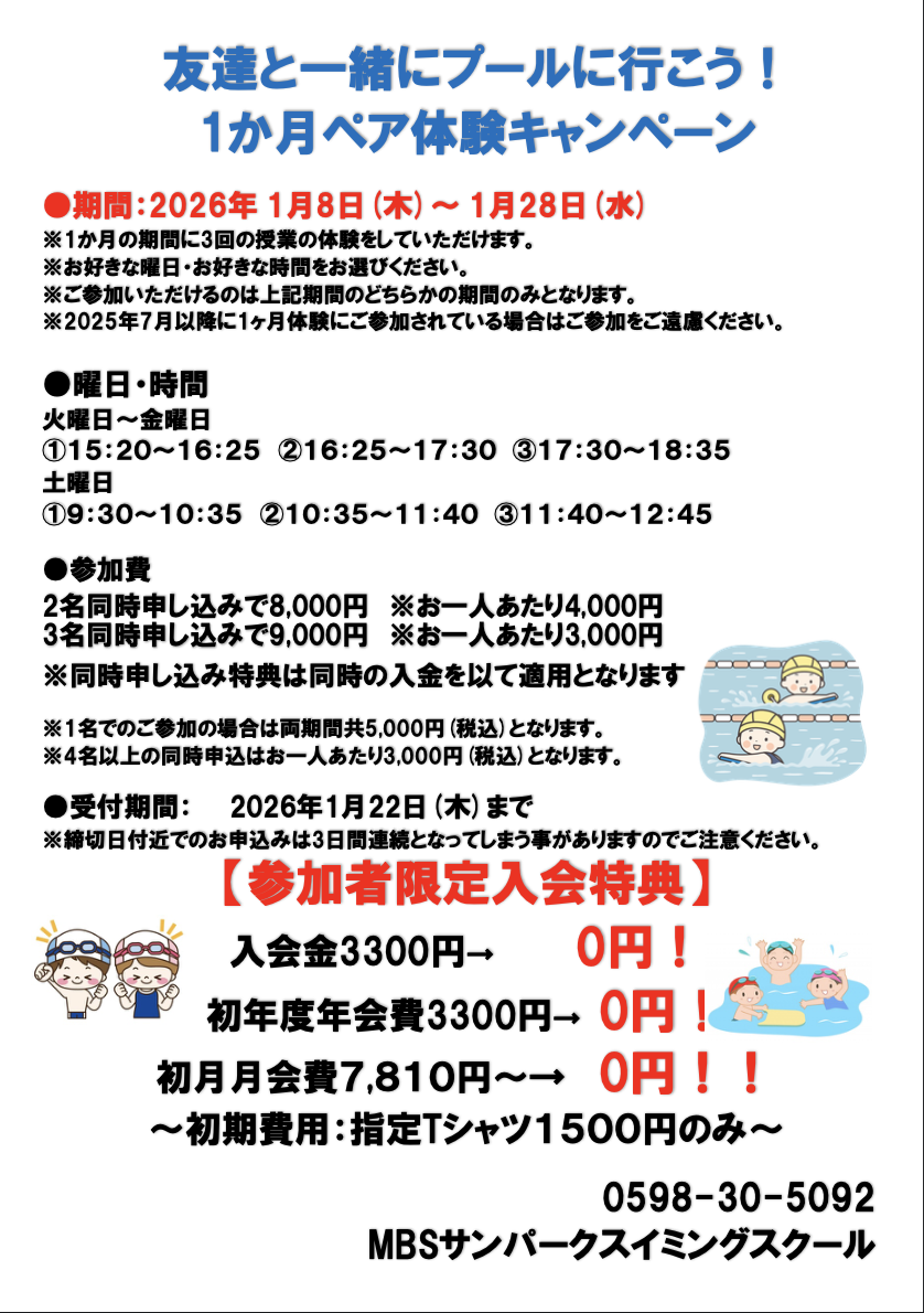 11月、12月と実施をしておりました、1ヶ月ペア体験を1月も実施いたします♬